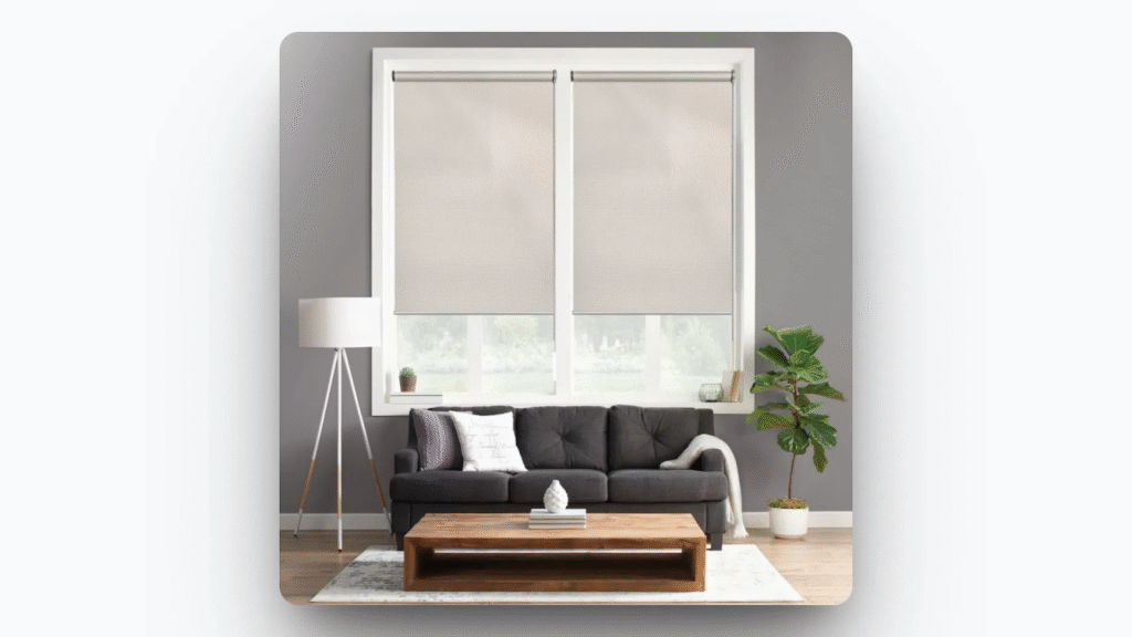 Soft daylight with daytime privacy in a DIY setup. Half Price Blinds lists roller blinds with light filtering and dimout fabrics so rooms stay bright with less glare.